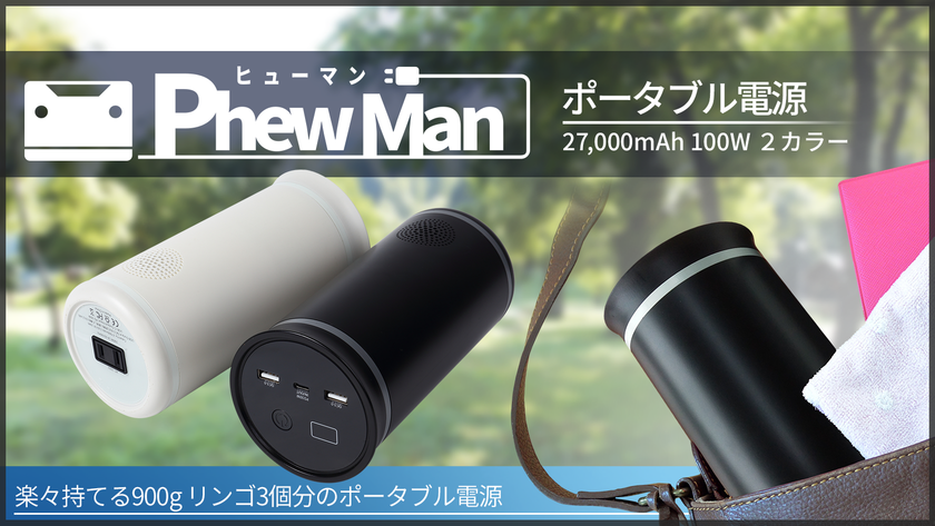 株式会社イデアル(所在地:埼玉県久喜市、代表者:山岡 慎太郎)は、小型で軽量かつ大容量パワーの災害対策用バッテリー『PhewMan 100』を日本最大級のクラウドファンディングサイト「Makuake(マクアケ)」にて2020年9月16日に発売いたしました。