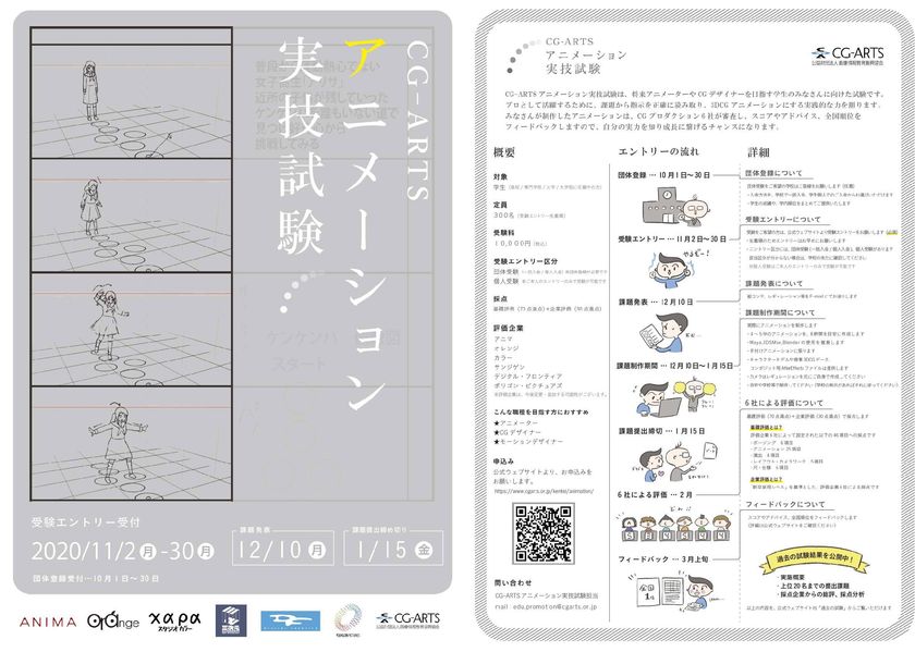 CG-ARTS(公益財団法人画像情報教育振興協会)は、第一線で活躍するアニメCGプロダクションが、3DCGアニメーションのスキルを測る「CG-ARTS アニメーション実技試験2020」団体登録受付を2020年10月1日に開始いたします。(10月30日まで)