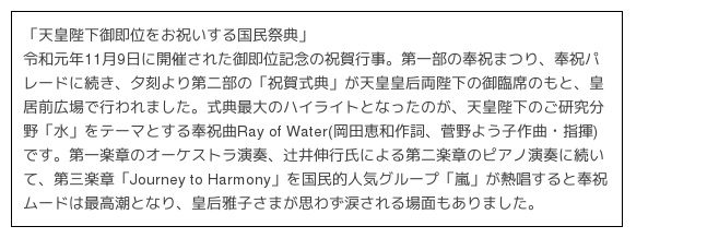 祭典にて両陛下の御前で歌われた奉祝歌が、初めてオルゴールに!天皇陛下御即位記念 金貨コレクション全5点の一般販売を開始します。