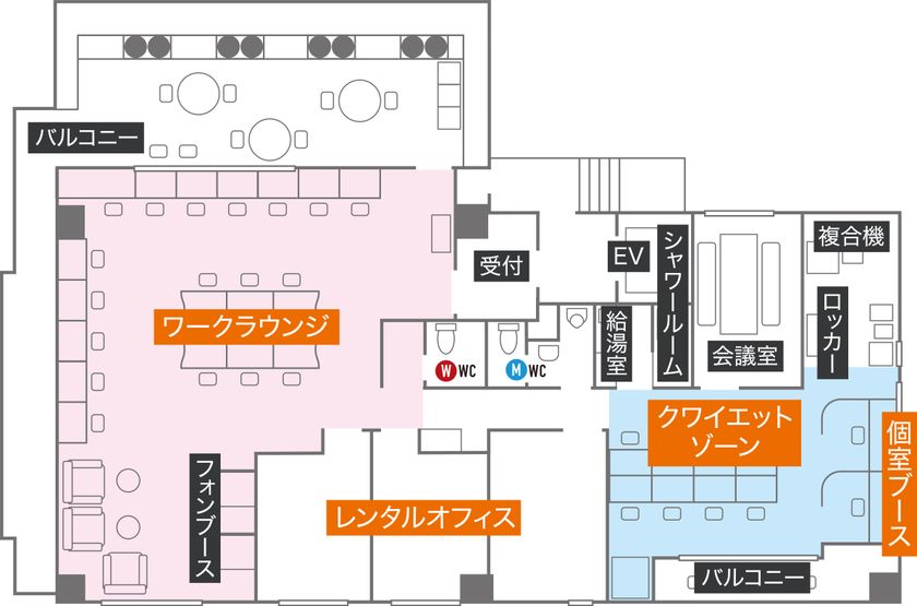 「プレミアムSOHO表参道」の“WORK LOUNGE”と“QUIET ZONE”
