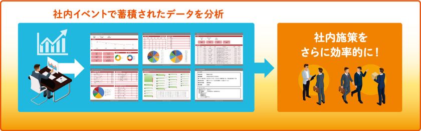 イベントでは、社員データやコンテンツ回遊状況、動画閲覧状況、講師社員の育成結果などに関するデータを分析。また、ここから見えてくるあらゆる情報から、社内イベント後の社内施策としてもご活用いただけます。