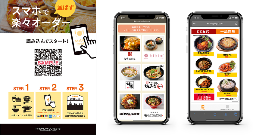 日本国内9か所で「プレミアム・アウトレット」を経営する三菱地所・サイモン株式会社(所在地:東京都千代田区、代表取締役社長:山岸 正紀)が展開する酒々井、御殿場、佐野の3か所のプレミアム・アウトレットの飲食店舗にて、Okage株式会社(所在地:東京都中央区、代表取締役CEO:内田 善久)が提供するモバイルオーダー&ペイシステム「Okage Go店外版」が導入されます。