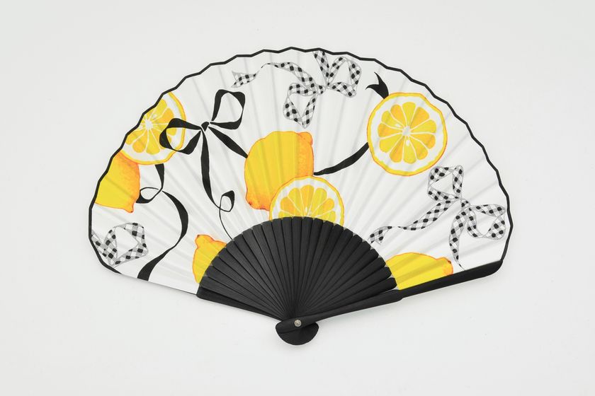 人気イラストレーター マツオヒロミによるデザイン「LEMON RIBBON」をシェル型扇子で制作いたしました。
