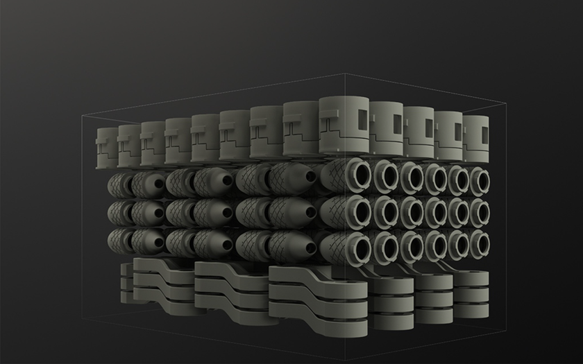 バインダージェット方式では、中規模の量産(100-10,000個)を1式でカバーすることができるため、それらの負担を大幅に軽減することが可能です。