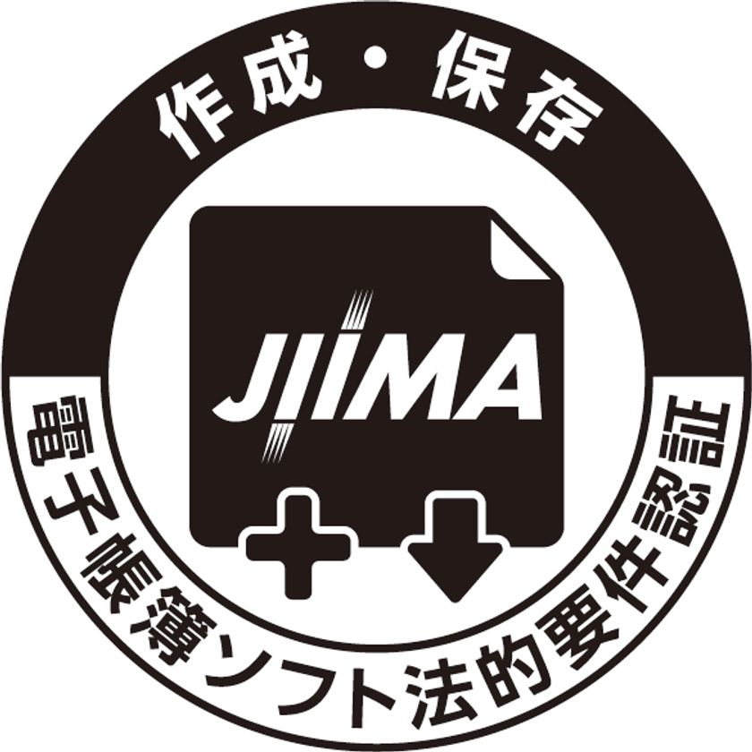 国税関係帳簿を作成・保存する電子帳簿保存法対応ソフトウェアの機能仕様をチェックし、JIIMAが法的要件を満足していると判断したものを認証する制度です。この制度により、そのソフトウェアを導入する企業は、電子帳簿保存法及びその他の税法が要求している要件を個々にチェックする必要がなく、安心して導入することができます。また、認証した製品は、JIIMA及び国税庁のホームページで公開され、次のようなロゴ(例)の表示が認められます。