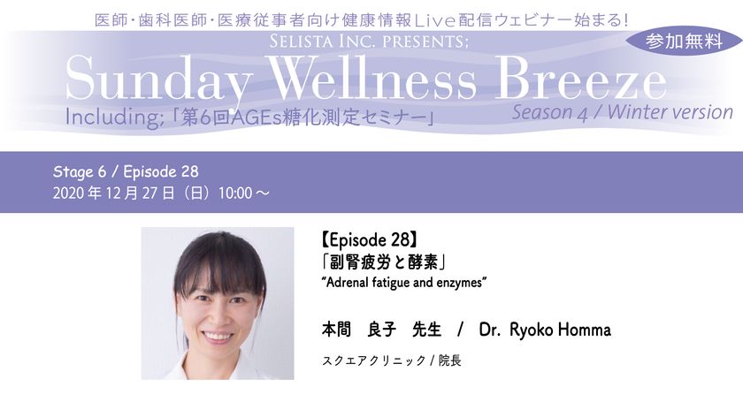 =医師・歯科医師・薬剤師向け無料Liveウェビナー= 《Sunday Wellness Breeze, Season 4,Stage 6 (Episode 28)》12月27日(日)開催!