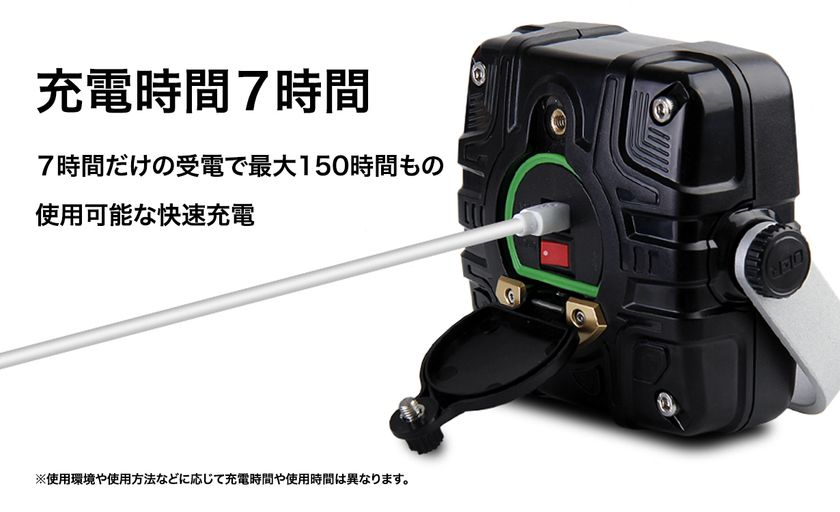 Prometheus-IIでは、大容量バッテリーと快速充電方式を導入したことにより、7時間の充電時間で最大150時間という驚くべき時間の使用が可能となりました。
