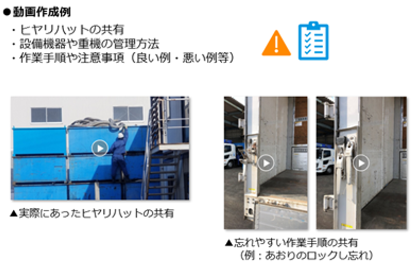 現場での車両点検や機械の操作方法などお手持ちのスマホで撮った動画を専用のクラウド環境にアップロードし、社内で共有して学習教材として活用することができます。