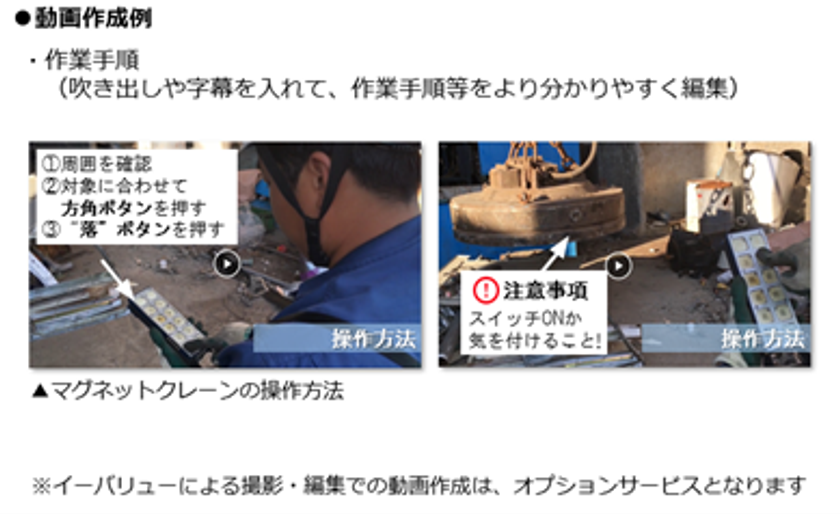 当社が撮影し、作業手順を吹き出し字幕で入れて、分かりやすく編集することも可能です。(オプションサービスとなります)