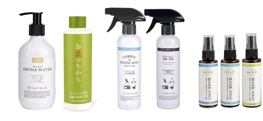 ・図5 株式会社キシマ お茶のちから、グリーンティーラボシリーズ(加湿器添加剤、マスク、ルームスプレー)