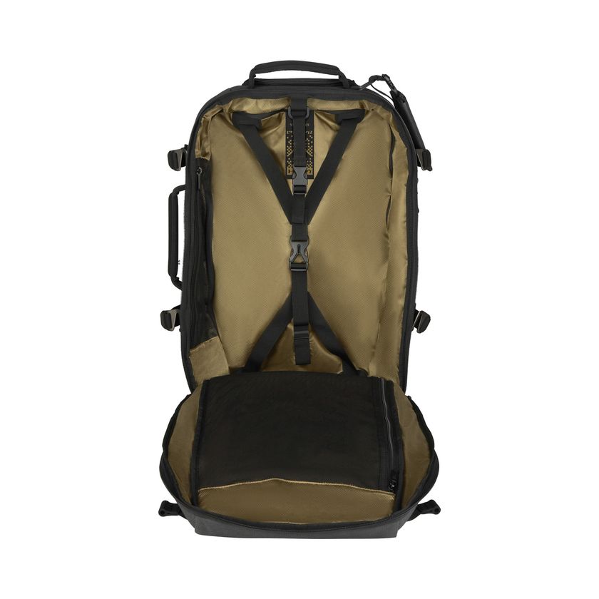 使い勝手抜群:強靭なハイパロン製のコンプレッションストラップでバッグの中身を圧縮可能。
