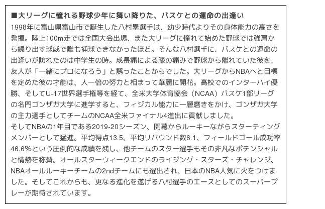 ■八村塁選手の勇姿をとらえた写真とともに特製展示ケースにセット