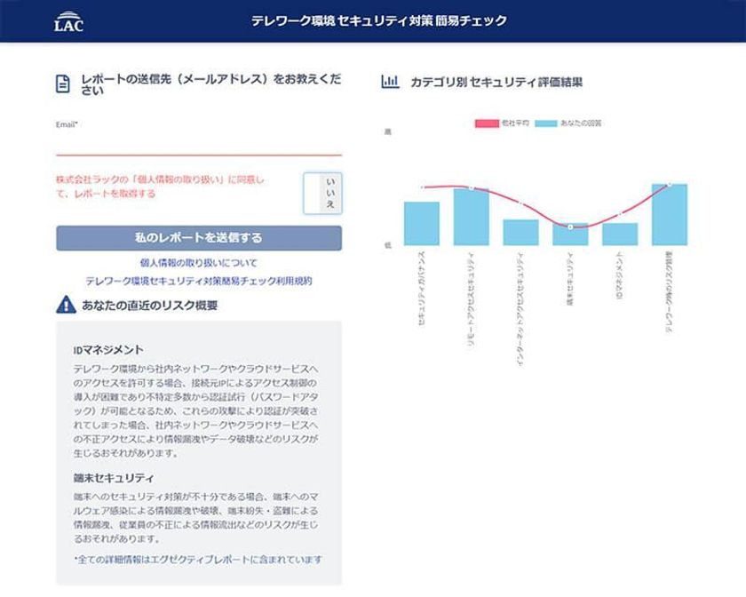 ラック、企業のテレワークセキュリティ状況を自己診断できる無料Webサービス「テレワーク環境セキュリティ対策簡易チェック」を公開