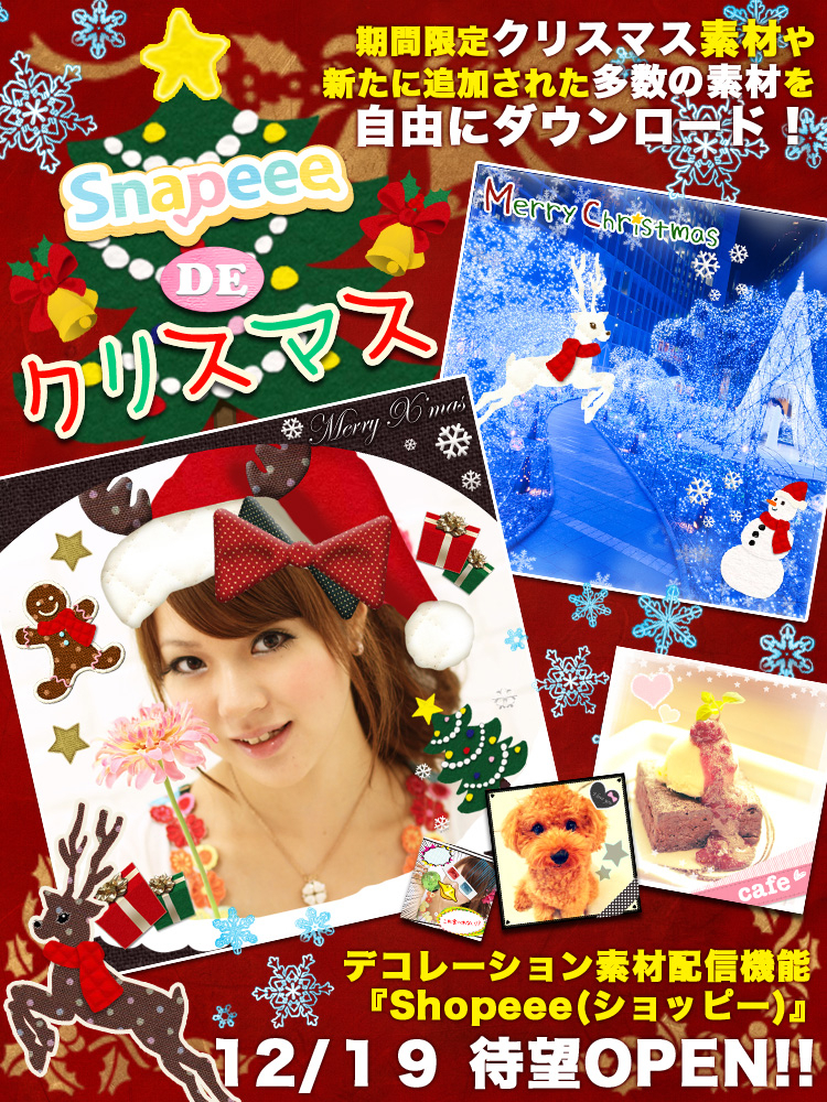 写真共有アプリ『Snapeee(スナッピー)』でクリスマスがもっと楽しくなる!待望のデコレーション素材配信機能『Shopeee(ショッピー)』がついにオープン!