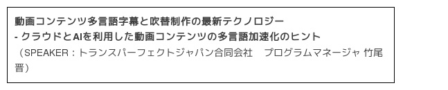 手動で進めるとかなり時間を要してしまう文字起こしや翻訳の作業を、テクノロジーを活用することでできるだけ自動処理で対応するというもの。音声認識による自動書き起こし、文字化した文書の自動翻訳など翻訳に関わるたくさんの作業が自動化することが可能となる。