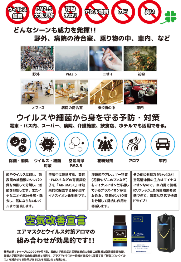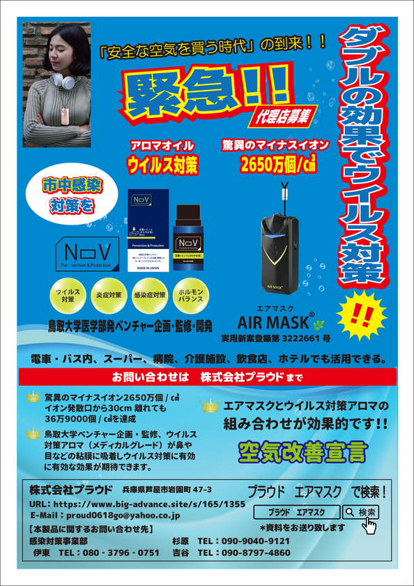 ウイルス感染症に備えて「安全な空気を買う時代」の到来 エアマスク&メディカルアロマシールドを新発売!〜販売代理店 緊急募集 限定50社〜