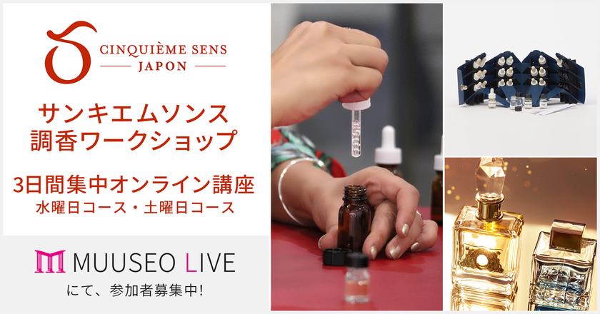 ミューゼオが新たに立ち上げたオンラインで講座やワークショップをインタラクティブに楽しむサービス「Muuseo Live」で、「サンキエムソンス ジャポン」の調香ワークショップ・少人数オンライン講座を、2021年3月3日(水)より開講(*応募締め切りは2月27日(土)まで、残席はわずかとなります)。