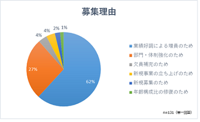 求人掲載企業の多くが「業績好調による増員」を理由に採用活動を実施しています。コロナ禍で転職市場も厳しい状況ではありますが、本サービスには比較的業績が堅調な企業が多いことが読み取れます。