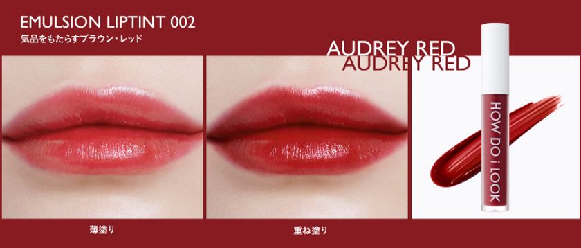 ハウドゥアイルック エマルジョンリップティント002 (オードリーレッド)