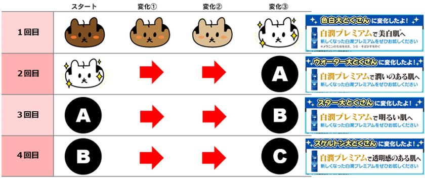 ・60秒のオリジナルCM内で中京テレビの番組キャラクター、大とくさんがロート製薬の「肌ラボ 白潤プレミアム」を紹介