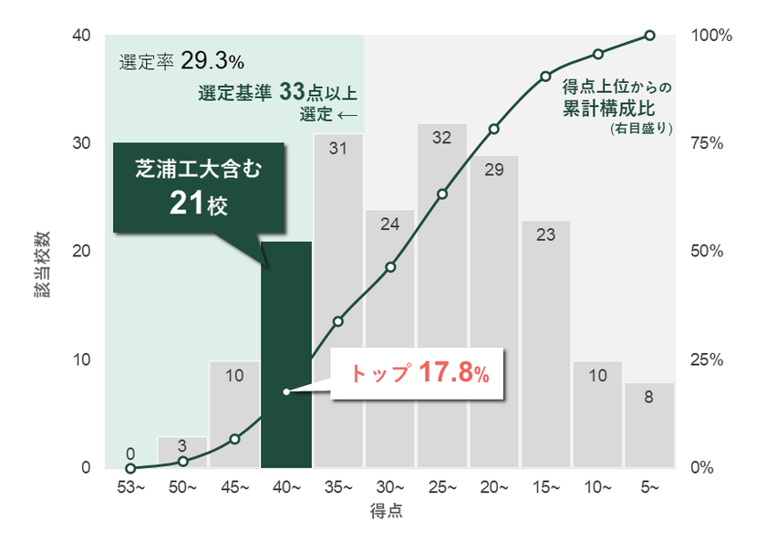 今年は624校が申請し281校が選定。全4タイプ選定校は、芝浦工業大学を含む7校のみでした。これで2013年度は全3タイプ、14年度からは毎年4タイプで選定。本事業の開始以来、8年連続での選定となりました。