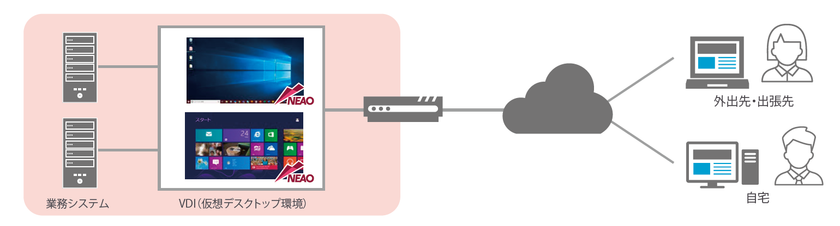 仮想デスクトップ環境を用いた従業員のテレワーク環境のモニタリング適用イメージ