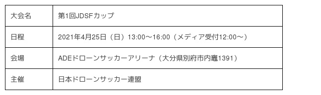 ・4月25日(日)に、国内初となる国際ルールに則った公式大会「第1回JDSFカップ」を、ドローンサッカー場ADEドローンサッカーアリーナにて開催します。