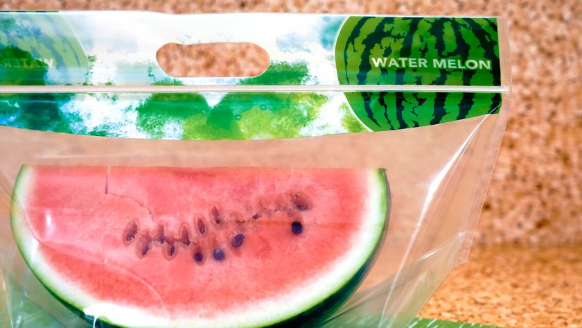 袋詰めが難しい“カットスイカ”専用手提げタイプの包装『スイカチャック付スタンド袋』累計販売枚数500万枚突破