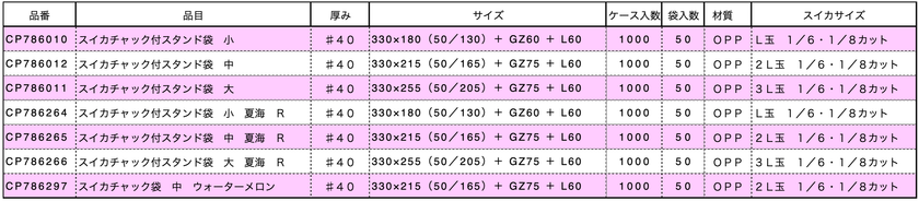 一般的な無地袋タイプから夏休みをイメージさせ季節感を演出できる夏海柄、売場での高級感を演出するウォーターメロン柄。エリアや立地条件に合わせて選べるというのが弊社製品の強みです。