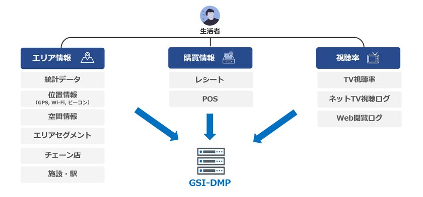 公的統計、全国店舗データ、携帯GPS、Wi-Fi、ビーコン、TV視聴率などエリアマーケティングに必要なデータをプラットフォームとして提供