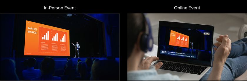 イベント会場の大画面(左)とライブ配信それぞれに適した映像を出力