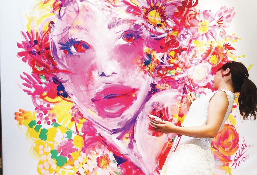 女性画とアブストラクト絵画を中心に発表。POPなカラーリングとスパッタリングの技法で生きているものが放つ魅力や、その生気について描き、世界各地でもパフォーマンスを行う女性アーティスト。