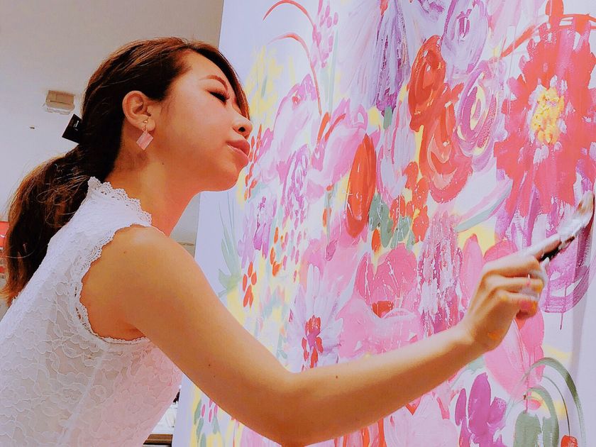 他、国内外アートフェアへの出展やパフォーマンスなどを行う新進気鋭の女性画家。