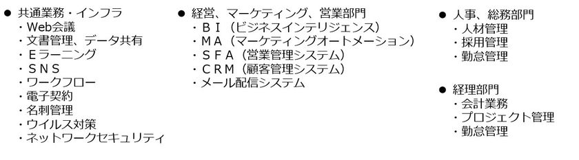 主なクラウド活用の業務分野一覧
