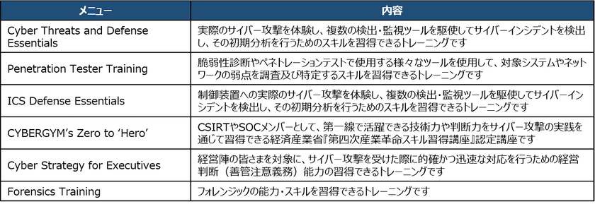 サイバージムジャパンは、サイバーセキュリティ分野において世界最高レベルのイスラエルで技術を確立しているCYBERGYM(イスラエル)との連携により、専用トレーニング施設での実践的かつ体系的なトレーニングを中心とする幅広いセキュリティソリューションを提供しています。