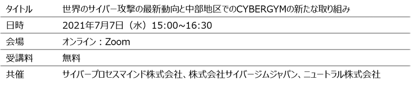 ニュートラル株式会社(本社:名古屋市中区錦、代表取締役社長:小屋 晋吾)は、サイバーセキュリティ分野で協業する株式会社サイバージムジャパン(本社:東京都港区、代表取締役社長 兼 CEO:石原 紀彦、以下「サイバージムジャパン」)が2021年7月に開設するサイバーセキュリティ専用トレーニング施設(以下「CYBERGYM名古屋」)で、サイバーセキュリティトレーニングを提供する旨を発表いたします。