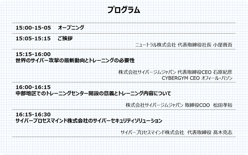 サイバーセキュリティ専用トレーニング施設、ニュートラル名古屋本社に登場 〜中部東海エリアの企業のサイバーセキュリティ人材育成を支援〜 7月7日(水)オープニングセミナー開催