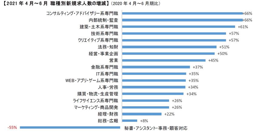 【2021年4月〜6月 職種別新規求人数の増減】(2020年4月〜6月期比)