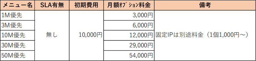 上記料金に加え2Gコース、10Gコースの基本料金が別途かかります。2Gコース5,000円/月、10Gコース7,500円/月。