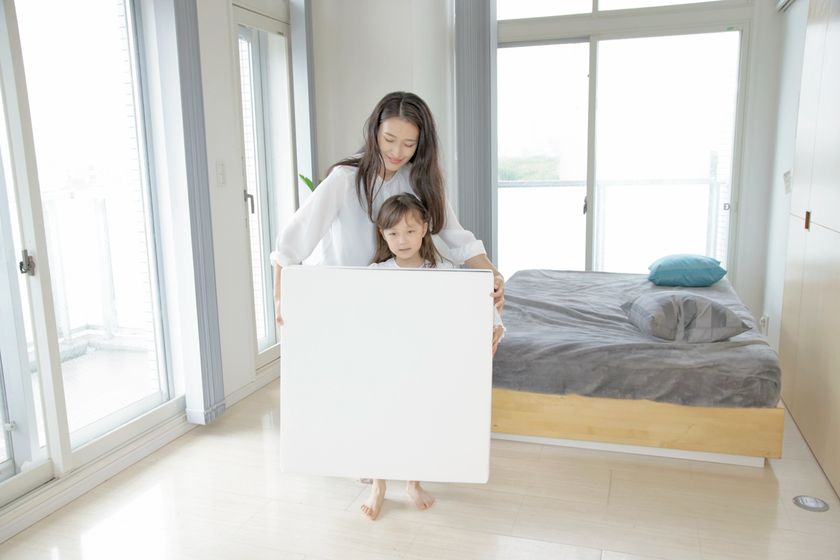折りたたみ式のため、お掃除や収納も楽々。2枚に分かれており軽量コンパクトなので持ち運びもスムーズで、使わないときはちょっとしたスペースへの収納も可能です。