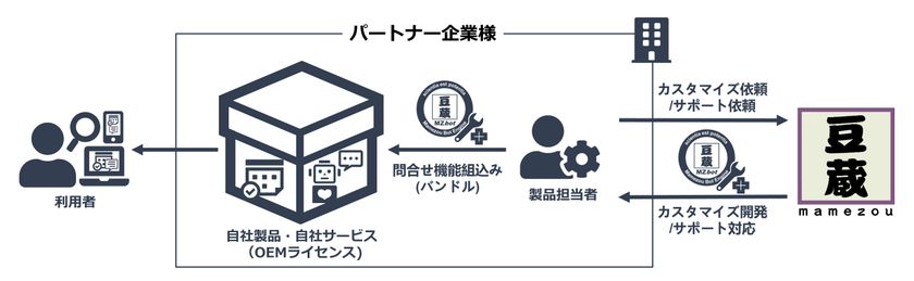 パートナー契約を締結いただき、本OEMライセンスを適用することで、対話型AIエンジン『MZbot』を自社製品や自社サービスに自社ブランドとしてバンドル販売することが可能となります(図5)。