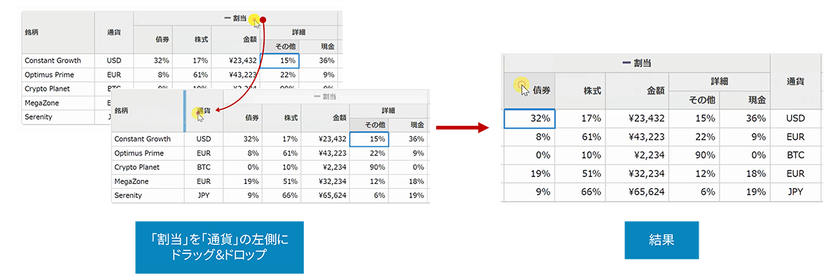 列グループを設定した状態でもドラッグ&ドロップで列の並び替えができるようになりました。
