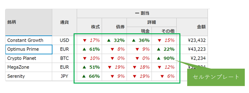 Angular/React/Vue.jsに対応した列グループ用コンポーネントを追加しました。これにより、HTMLでセルをカスタム表示できるセルテンプレートを定義できるようになりました。