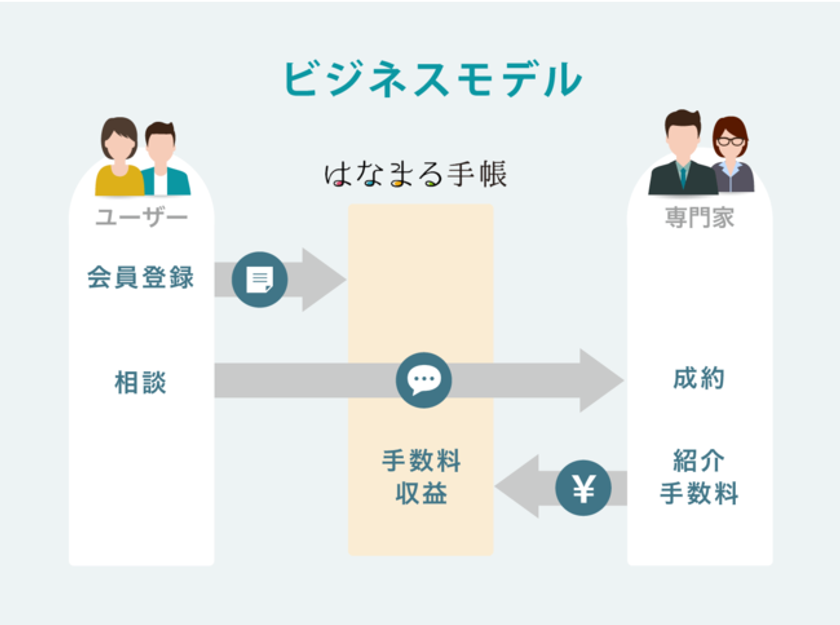 サービスを提供する税理士、行政書士、FPといった専門家は、はなまる手帳を利用することで顧客と直接商談ができ、加盟料無料で顧客流入先を増やすことができるといったメリットがあり、すでに公開1ヶ月で300名の専門家の提携申込みを受けています。