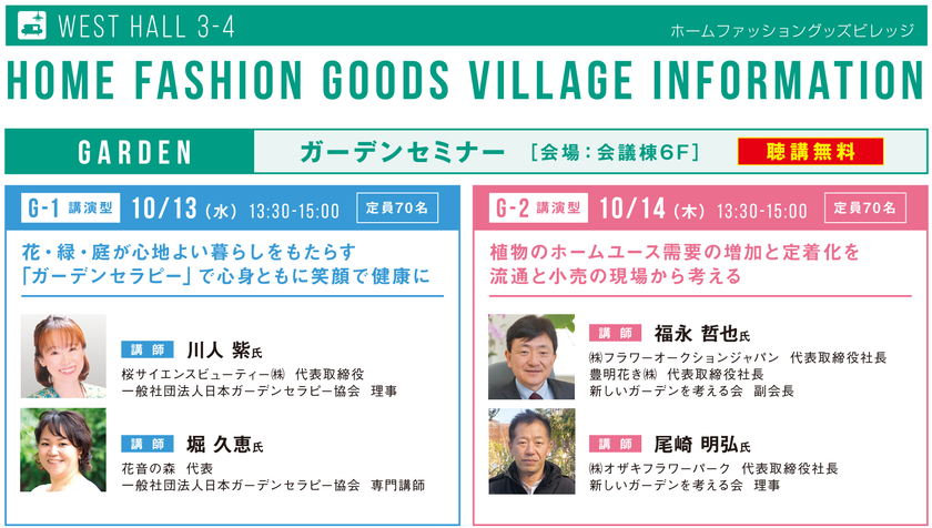 「ギフト・ショー」では、各業界を代表する豪華講師陣によるセミナープログラムを開催、「ガーデンセミナー」はリアル会場にて≪無料≫で聴講できます!この機会を是非お見逃しなく!