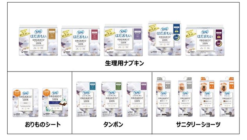 ソフィ(R)オーガニックコットンシリーズは、“女性にとって大切な生理期間等を少しでも快適にすごしてほしい”という想いから誕生しました。原材料にオーガニックコットンを使用しており、敏感肌にやさしい素材です。ナプキン、おりものシート、タンポン、サニタリーショーツの各商品を展開しています。