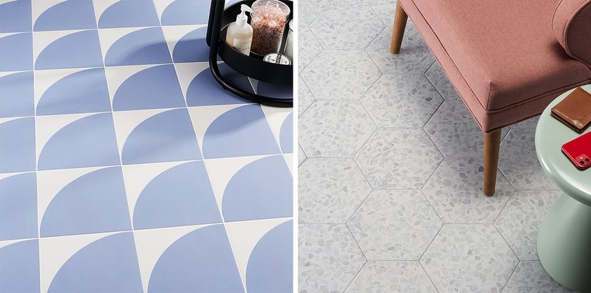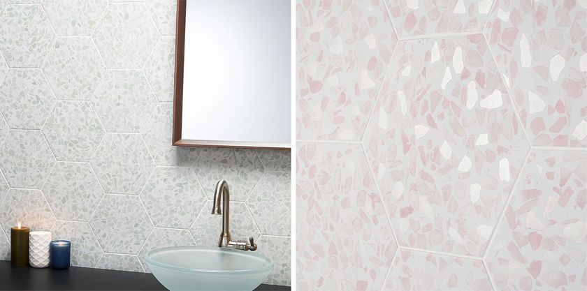 9月はレトロフューチャーな円弧模様が特徴の200角タイル「マドックス」、10月はリバイバルで人気が再燃した“テラゾー仕上げ”の六角形タイル「テラゾーヘックス」が続々登場。