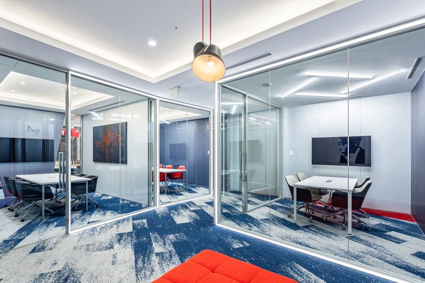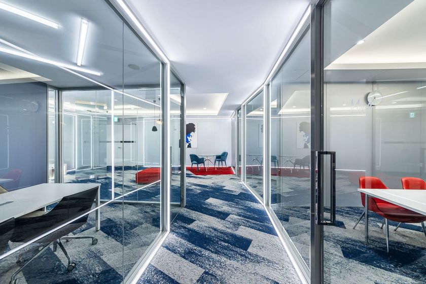 オフィス内もガラスを多用し、全面的に床を張り替えた遊び心のあるオフィスとなっております。