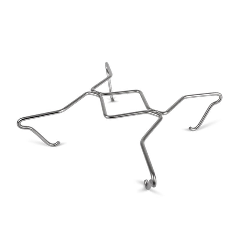 「調理用サポーター」は、同ブランドPetromaxの焚き火台「Atago」の専用アクセサリーで、ダッチオーブンやスキレットなどを上に乗せて調理しているときにも隙間が十分に空くため、日の調整や薪入れがしやすくなります。単体で鍋敷きにも使えます。