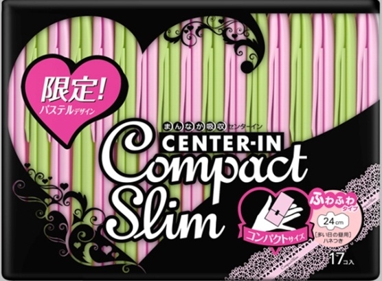 今回、『センターイン コンパクトスリム』より、個別ラップに春らしい爽やかなパステルカラーと、ご自身へのバレンタインプレゼントをイメージした「ハート柄」のデザインパッケージを採用し、2013年1月上旬より全国にて限定発売いたします。